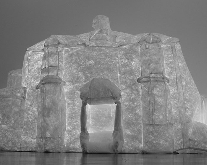The work explores the notion of space, in particular the contrasting but analogous spaces of the Art Gallery of Greater Victoria-the Victorian Mansion and the modern additions that house the gallery spaces. The Art Gallery of Greater Victoria is a unique structure in that two diametrically opposed spaces are joined, with functions that appear to contrast each other: a private home combined with an institution. The house was designed with such opulence yet the additional gallery spaces could not be more non-descript. Although such differences exist between them they both offer versions of the modern utopic ideal. This project explores physical perception and the concept of space, primarily within built structures.